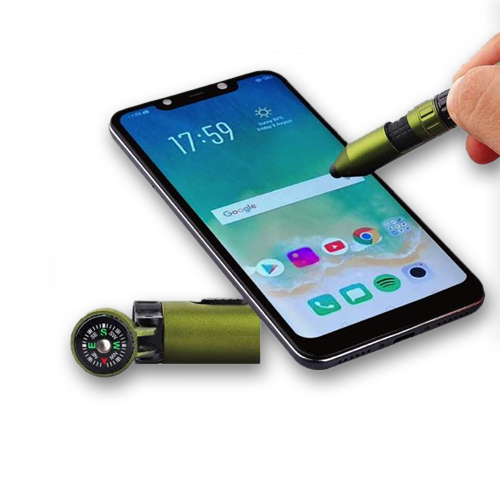 Premium 6 in 1 Military Plastic Pen with Compass, Torch, Tools, Phone Stand & Stylus