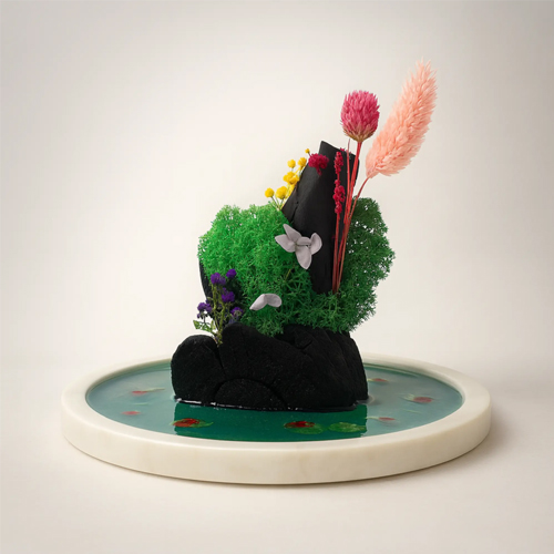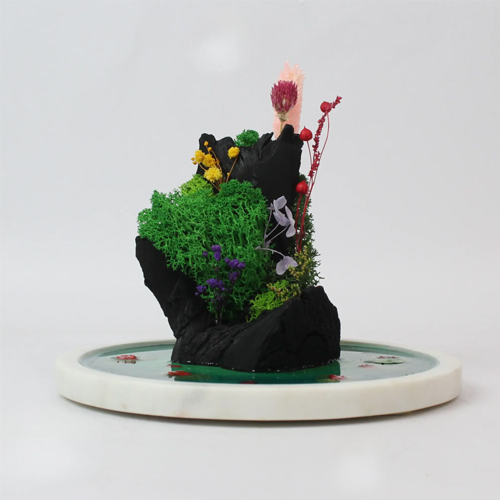 The Forest Aqua Marble Pro Eco-Friendly Home Décor is more than just an art décor item—it is an immersive design concept. The smooth grain of premium white marble forms the base, while artisanal turquoise resin mimics the tranquility of flowing water. The preserved moss and delicate dried flowers introduce an eco-lux appeal, bringing nature indoors in its most elegant form.