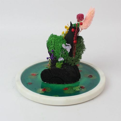 Whether you are curating a minimalist home, eco-friendly interior, or contemporary décor theme, this product fits seamlessly into any environment. The blend of white marble and vivid turquoise tones offers a refreshing pop of color, while the moss and floral details introduce natural texture and depth.