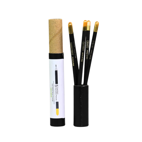 Choose the Black Gold Pencil Set (5pc set) if you seek stylish, eco-friendly, and functional writing instruments that stand out in design and performance. With premium materials, a luxury black-gold finish, 100% recycled paper build, and 2B graphite rods, this set offers the perfect balance of sustainability and quality—making it one of the best eco-stationery items for everyday use.