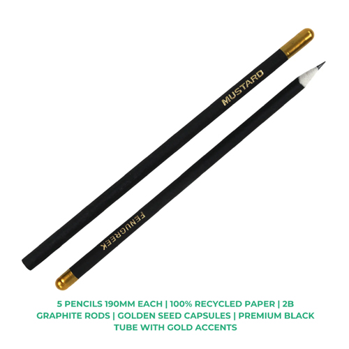 Introducing the Black Gold Pencil Set (5pc set), a thoughtfully designed premium stationery product crafted for professionals, students, artists, and environmentally conscious buyers. Made using 100% recycled paper and high-quality 2B graphite rods, this eco-friendly pencil set offers smooth writing, rich shading, and a luxurious black-and-gold aesthetic. Each of the 5 pencils comes with elegant gold seed capsules & accents, combining sustainability with style. Whether you want high-grade writing tools or unique eco-friendly gifts, this pencil set delivers exceptional value and performance.