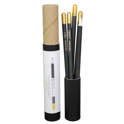 This Black Gold Pencil Set (5pc set) delivers an outstanding blend of sustainability, visual appeal, and writing quality. Traditional wooden contribute to deforestation, whereas these 100% recycled paper pencils support a greener future. The 2B graphite rods provide superior control and balanced softness, making them ideal for both writing and artistic work. The gold seed capsules highlight your commitment to living and offer a unique planting experience. With stylish gold accents, the look premium and make a strong impression whether used at home, school, or the workplace.