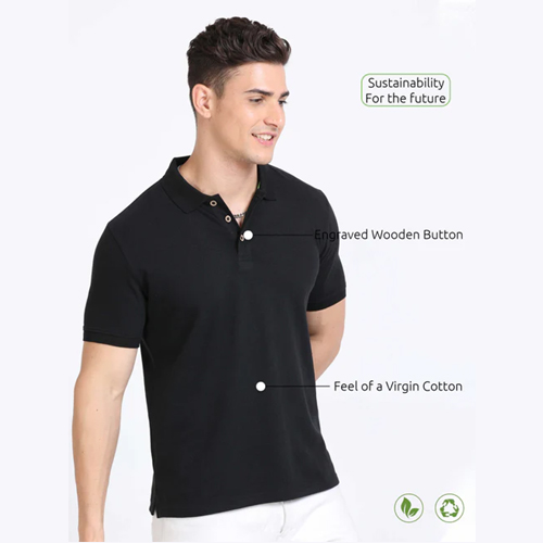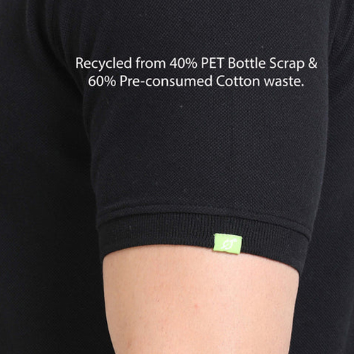 Embrace eco-chic style with our Sustainable Black Polo t-shirt, a wardrobe essential that aligns with your commitment to quality and the environment. Crafted from responsibly sourced materials, this tee is the embodiment of conscious fashion. Our fabric is a blend of 60% pre-consumer cotton waste and 40% recycled PET bottle scrap, making a meaningful contribution to sustainability while maintaining a timeless and elegant look.
