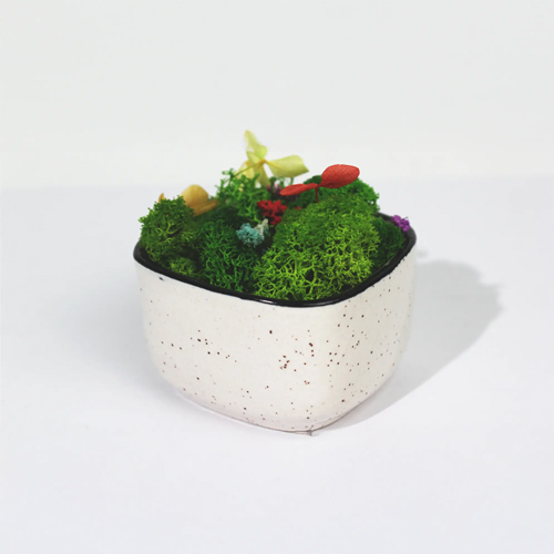 The Ceramic Forest Bowl is crafted for individuals and businesses looking to enhance interiors with eco-friendly décor elements. Whether you are decorating a home, a café, a corporate office, or looking for thoughtful sustainable gifts, this décor piece adds charm and freshness to any environment. The preserved moss and flowers are treated using advanced techniques that maintain their natural texture and color for years while staying completely maintenance-free. This means no watering, no trimming, and no sunlight exposure—just timeless beauty.