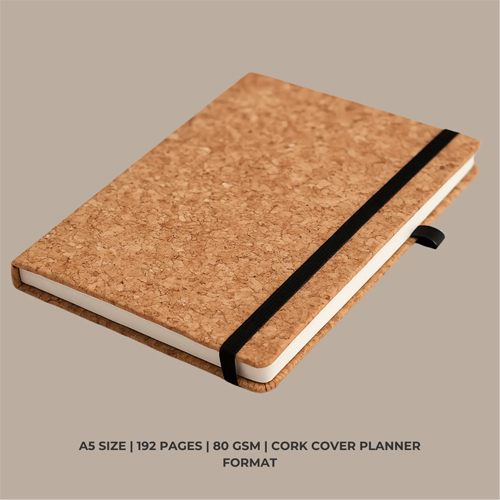 The Cork A5 Notebook and Diary (Classic) is designed for eco-conscious professionals, students, and organizations seeking a stylish yet sustainable writing solution. Made from premium eco-friendly materials, this A5 size cork notebook is an ideal blend of functionality, durability, and modern design. With 192 pages (80gsm), smooth ruled sheets, and a natural cork cover, this notebook is perfect for everyday writing, journaling, planning, and corporate gifting.