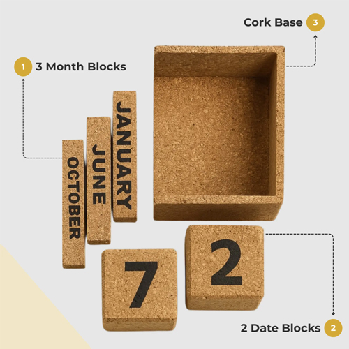 Cork Block Calendar Eco-Friendly | Handcrafted Perpetual Calendar for Sustainable Living