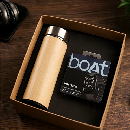 The Crown – 2 in 1 Gift set with hard box | 972, Bamboo Bottle, Boat Smart Watch is a premium corporate and personal gifting solution designed to combine sustainability, technology, and everyday utility in one elegant package. Crafted for modern professionals and conscious consumers, this delivers both style and functionality, making it ideal for corporate gifting, festive gifting, employee rewards, and premium promotional campaigns.