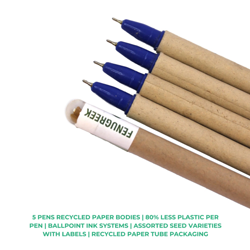 - Set of 5 eco seed pens with 5x less plastic for reduced environmental impact