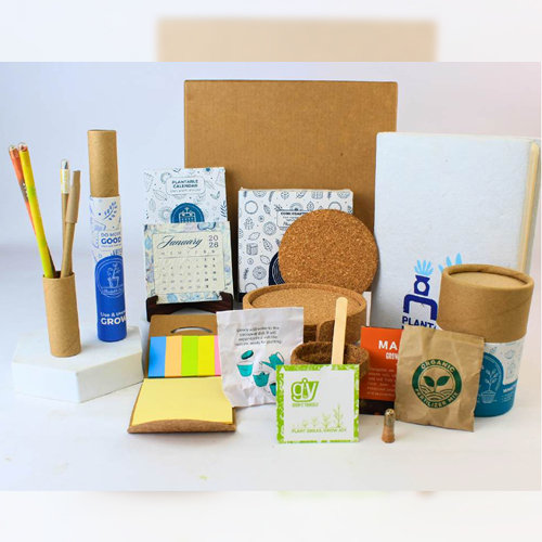 The EVERYDAY ECO GIFT BOX – D Eco-Friendly Gift Set (D1003) is one of the most thoughtfully curated sustainable gift hampers designed for corporate gifting, employee welcome kits, festive gifting, and eco-conscious celebrations. Every item inside this eco gift box promotes sustainability, making it a meaningful choice for organisations looking to reduce their carbon footprint. With premium-quality plantable stationery, cork accessories, and biodegradable products, this eco gift set is ideal for brands committed to green initiatives.