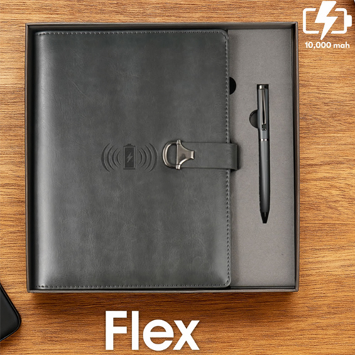Flex Power Bank With Diary | Metal Pen – 10000mAH Wireless Charging Power Bank