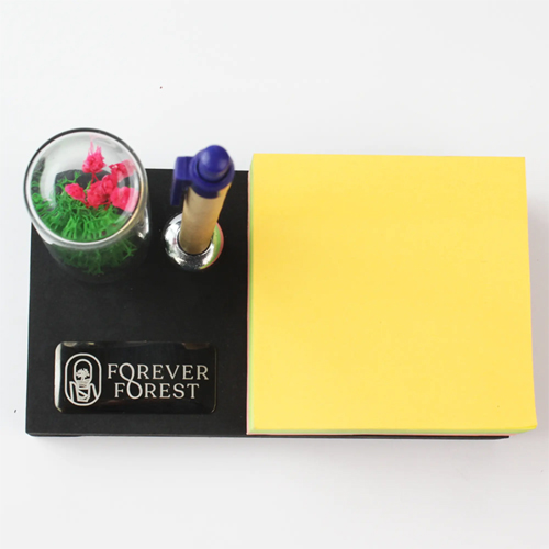 Whether you’re a company wanting to impress your clients or an individual looking to brighten your space, this mini preserved forest pen stand is a thoughtful eco-conscious choice. The combination of real preserved foliage, a durable wooden base, and a smooth Green Click pen makes it a premium desk accessory that delivers beauty and usability in equal measure.