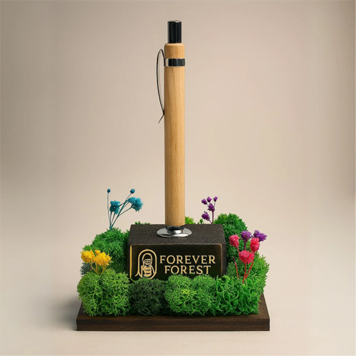 This eco-friendly pen stand blends nature, utility, and aesthetics. The Forest Quill Pen Stand Eco-Friendly product line is designed for sustainability-focused individuals and companies looking to provide meaningful, nature-inspired desk accessories. The preserved botanical base ensures year-round beauty without the need for care, making it a perfect décor element for both modern and traditional interiors.