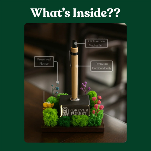 Ideal for corporate gifting, employee welcome kits, festive gifting, and eco-conscious personal use, this product appeals to organizations looking to promote sustainability and natural wellness. The combination of a premium bamboo pen, real preserved plants, and a long-lasting build makes it a thoughtful gift for clients, colleagues, and loved ones.