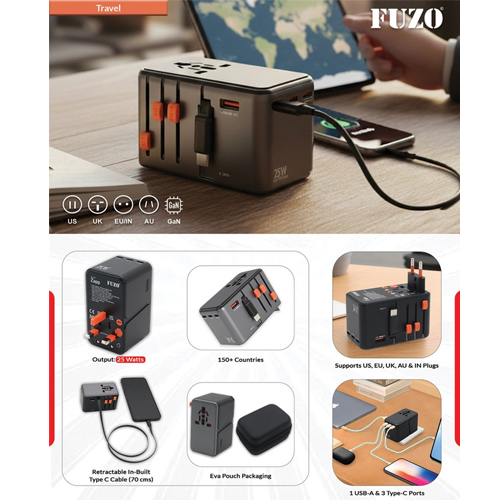 The Fuzo Zapp Travel Adapter with Retractable Cable (GaN Technology) is designed for modern travelers, digital nomads, and professionals who need fast, safe, and reliable charging across borders. With global compatibility in 150+ countries, this compact power solution supports US, EU, UK, AU & IN plugs, making it the perfect all-in-one international travel adapter.