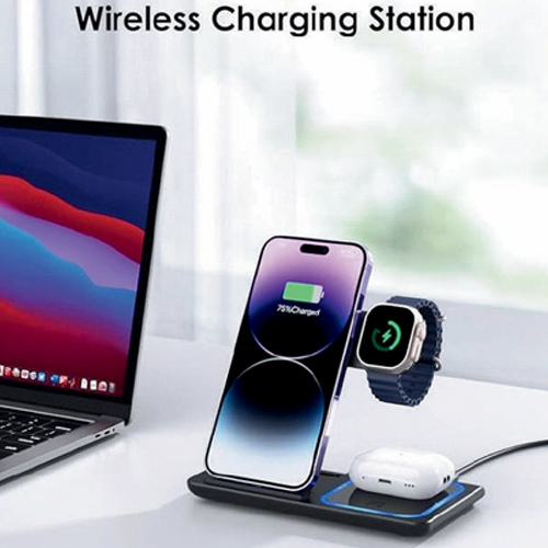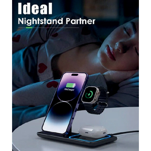 Say goodbye to tangled cables and multiple adapters. The 3 in 1 Charging design allows you to power your phone, smartwatch, and earbuds simultaneously using a single charging station. As a premium multi-device charging dock, it helps keep your desk organized while reducing clutter.