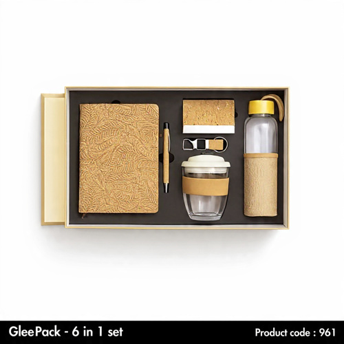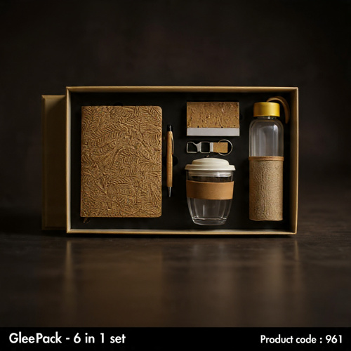 The Glee Pack- 6 in 1 Gift Set is a premium corporate gifting solution designed for professionals, employees, clients, and special occasions. This combines everyday essentials with sustainable materials, making it an ideal choice for companies looking for thoughtful corporate gift hampers, executive and environmentally responsible promotional gifts.