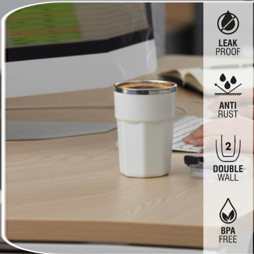 Built with a double wall stainless steel mug construction, the Hexa Flip mug helps maintain beverage temperature for longer while keeping the exterior comfortable to hold. The insulated design minimizes heat transfer, making it suitable for daily use without condensation or excessive heat on the surface.