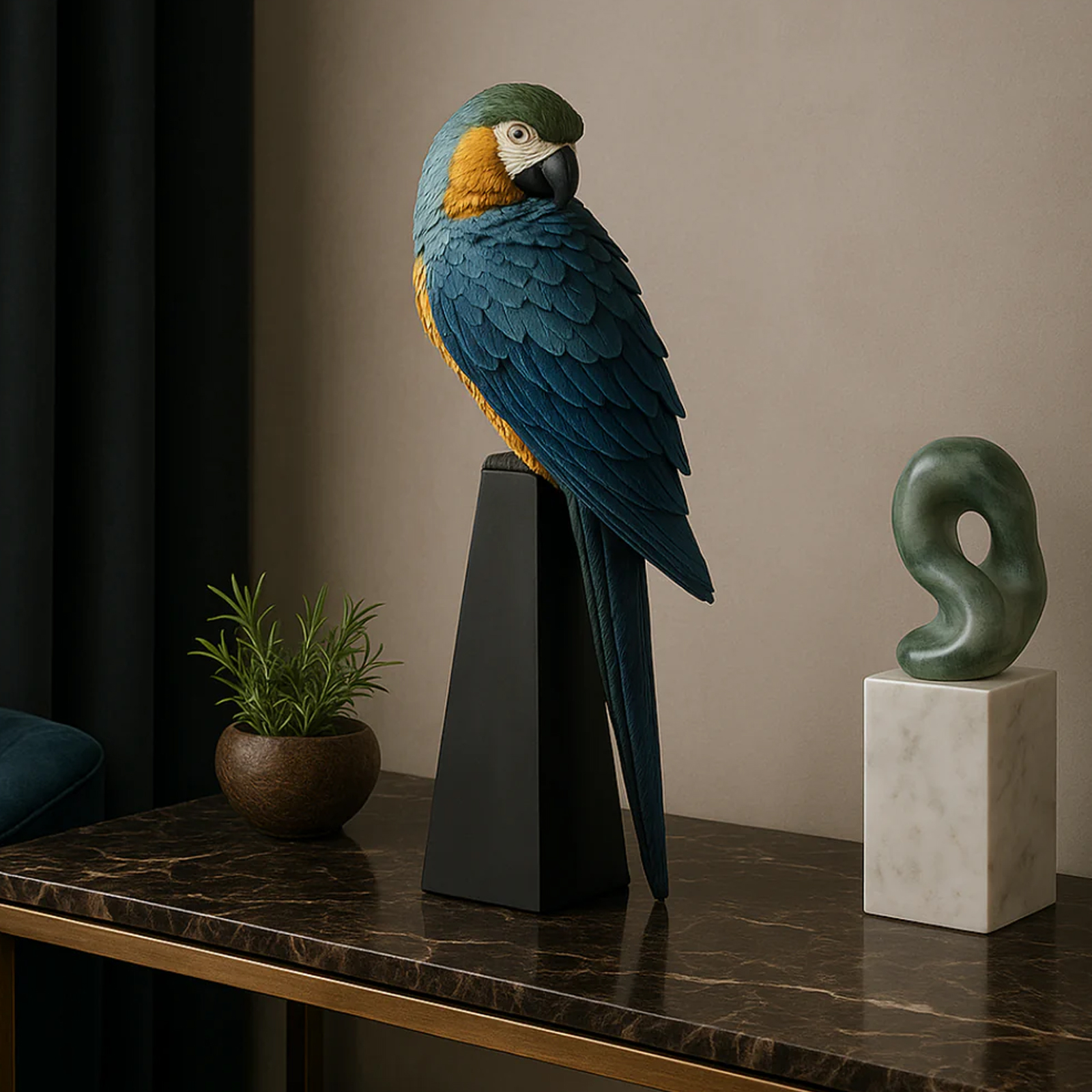 Introduce a burst of exotic charm and vibrant personality to your space with the Macaw on Base décor accent. This stunning sculpture captures the elegance and beauty of the macaw parrot perched gracefully on a sturdy base, making it a striking centerpiece for any room. The lifelike detailing of its feathers and posture, combined with its rich, colorful finish, brings a sense of the tropics and nature’s artistry into your home. Perfect for consoles, sideboards, mantels, or display cabinets, the Macaw on Base instantly uplifts your décor with its bold presence and playful sophistication. Crafted with high-quality materials, this piece balances durability and artistry, ensuring it remains a captivating element of your interiors for years to come. Whether placed in a living room, hallway, study, or office, it’s guaranteed to draw admiration and spark conversation.