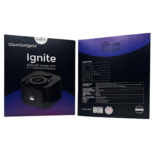 Built for efficiency, the Glow Gadgets Ignite 3 in 1 Wireless Charger & Bluetooth Speaker allows you to power multiple devices simultaneously without cluttered cables. Smartphones can be charged at speeds of up to 15W fast wireless charging, while earphones receive 3W optimized output and smartwatches are powered at 2.5W stable charging. This makes it an ideal solution for users looking for a multi-device charging station that saves time and desk space.