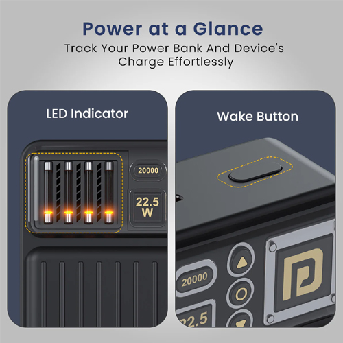 Experience rapid and efficient charging with 22.5W fast charging technology. The Portronics Luxcell Bind 20K power bank significantly reduces charging time compared to standard power banks, making it ideal for busy professionals and frequent travelers. It intelligently adjusts output to protect your devices while delivering optimal charging speed.