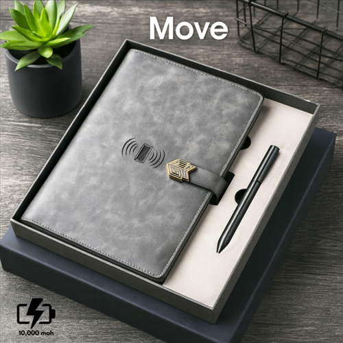 Move Power Bank With Diary | 10000mAh Wireless Charging Organizer