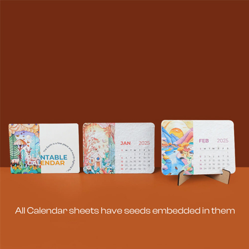 This eco-friendly plantable calendar comes with a DIY MDF stand featuring a smooth finish and an integrated pen/pencil slot for added utility. The calendar is ideal for office desks, home workspaces, events, employee welcome kits, and CSR activities. With more companies embracing sustainability, this innovative product stands out as a memorable and meaningful alternative to traditional paper calendars.