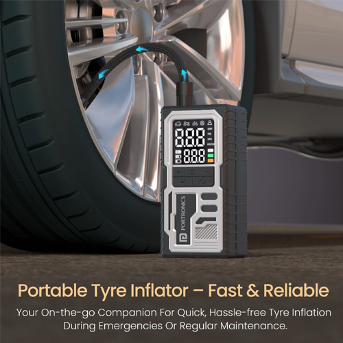 Portronics Vayu 10 Tyre Inflator – Portable & Rechargeable Air Pump