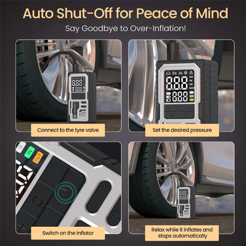 - Auto Shut-Off Function: Automatically stops inflation once the preset pressure is reached, preventing over-inflation.