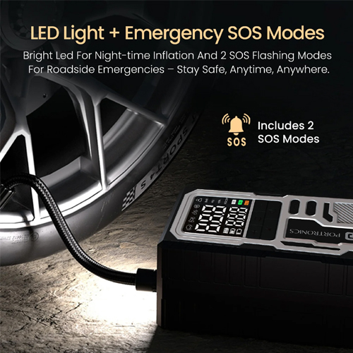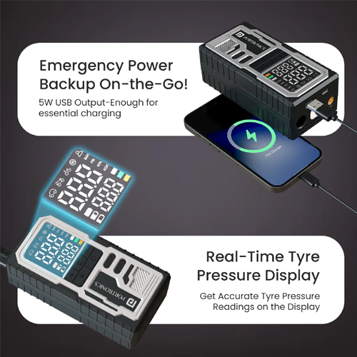 Key Features of Portronics Vayu 10 Tyre Inflator