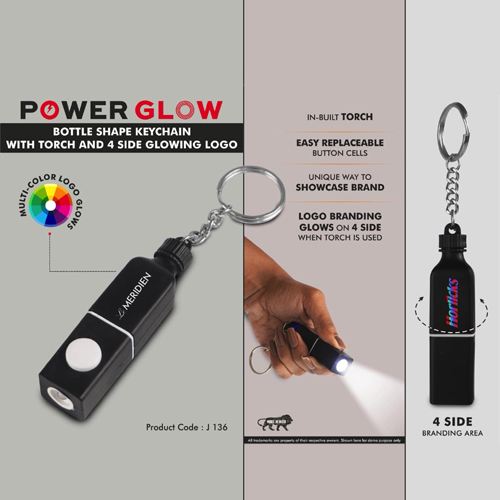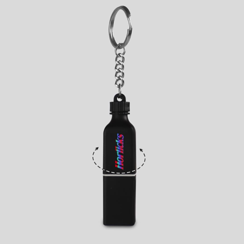 PowerGlow Bottle Shape Keychain with Torch & 4 Side Glowing Logo