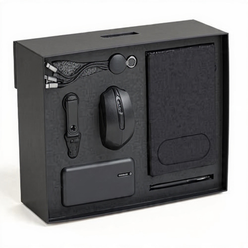 Companies looking for affordable corporate gift sets in bulk will find this option highly practical and cost-effective. The combination of diary and pen supports productivity, while the mouse, charging cable, and power bank cater to modern digital needs. The keychain adds a personal everyday touch, completing the premium gifting experience.