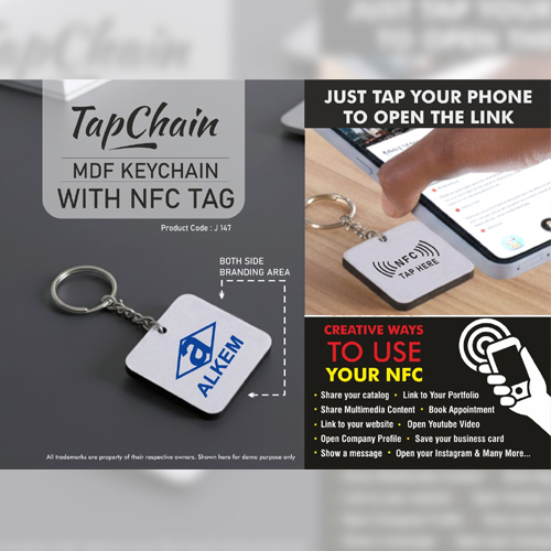 The dual-side branding capability allows full customization on both sides, making it perfect for logos, QR codes, brand messages, or creative designs. This flexibility makes the TapChain MDF Keychain with NFC Tag a powerful branding tool for events, exhibitions, product launches, and employee onboarding kits.