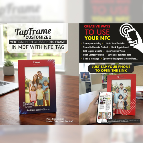 Choosing TapFrame means investing in innovation, durability, and brand impact. With its premium MDF construction, intelligent NFC technology, and generous branding space, it offers exceptional value for businesses looking to stand out. The elegant finish and smart functionality ensure your brand leaves a lasting impression. Upgrade your branding strategy today with the TapFrame High Gloss Photo Frame in MDF with NFC tag—a perfect fusion of design, technology, and marketing excellence.