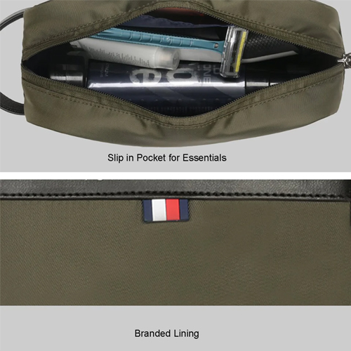 - Convenient Front Pocket: Easily accessible space for small items, shaving tools, cosmetics, or travel accessories.