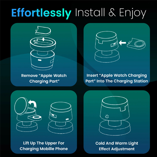 • 3-in-1 Wireless Charging Station: Charge iPhone, Apple Watch, and AirPods at the same time.