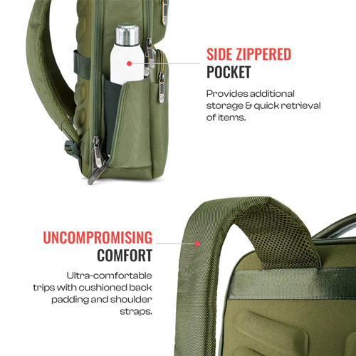 - Uncompromising Comfort with padded shoulder straps and ergonomic support