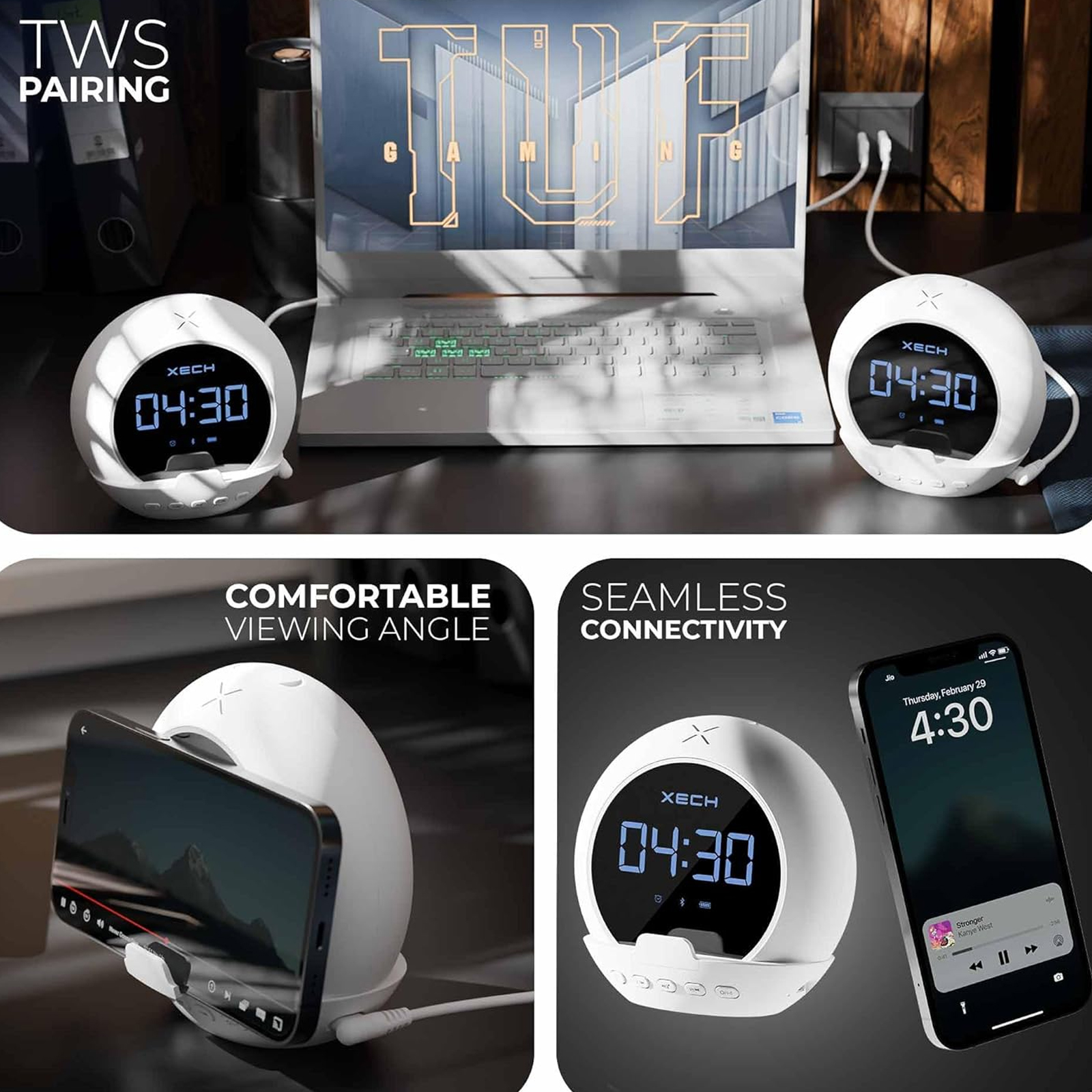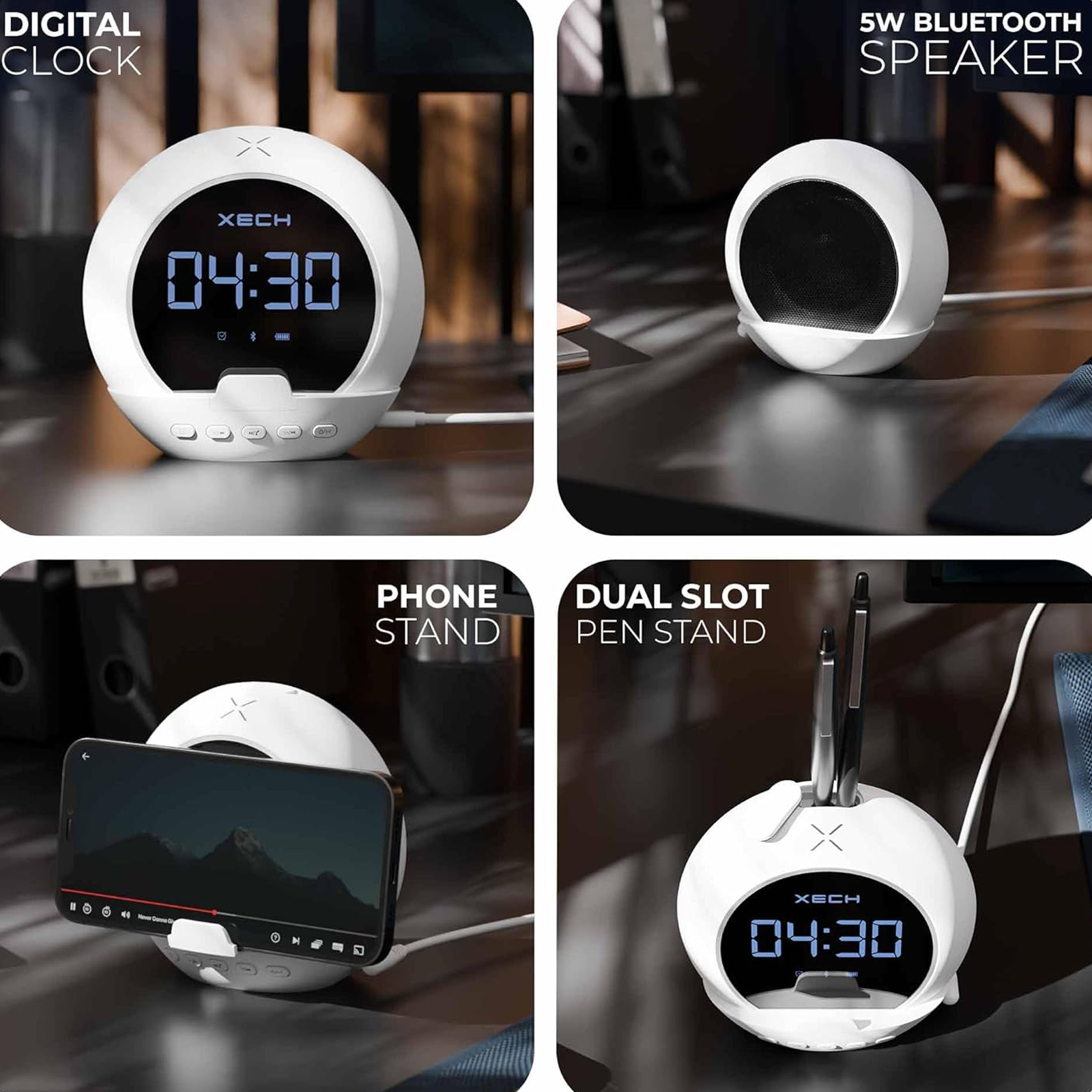 Introducing the XECH Ellipse, a fusion of sound, time, and functionality for the multi-tasking maestros. This sleek and compact wireless marvel combines a 5W speaker, digital clock, and alarm. Immerse yourself in high-quality audio, stay organized, and wake up on time. With wireless connectivity, TWS mode, USB C charging, and a host of features, the Ellipse speaker delivers minimalist elegance while enhancing productivity and providing a seamless audio experience.