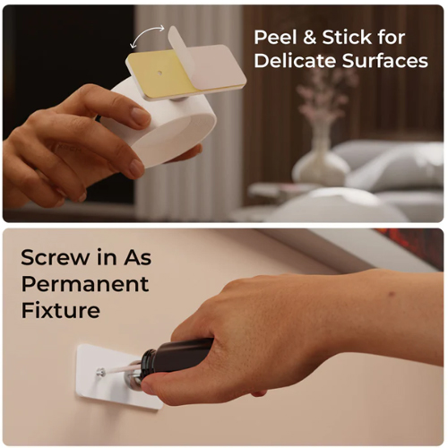 - Dual Mounting Options: Install permanently using screws or choose the adhesive sticker for a drill-free, damage-free wall setup. Perfect for renters and quick upgrades.