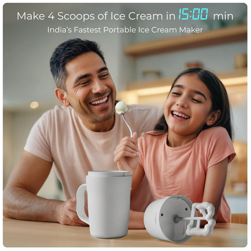 Built by this rechargeable ice cream maker is engineered for hassle-free operation. Pre-freeze the bowl, pour in your mix, press start, and watch it scoop-ready in just 15 minutes. The ergonomic scooper design ensures smooth serving without strain, making it ideal for kids and adults alike. Whether you love gelato, sorbet, frozen yogurt, or classic ice cream, this machine delivers consistent texture and delightful taste.