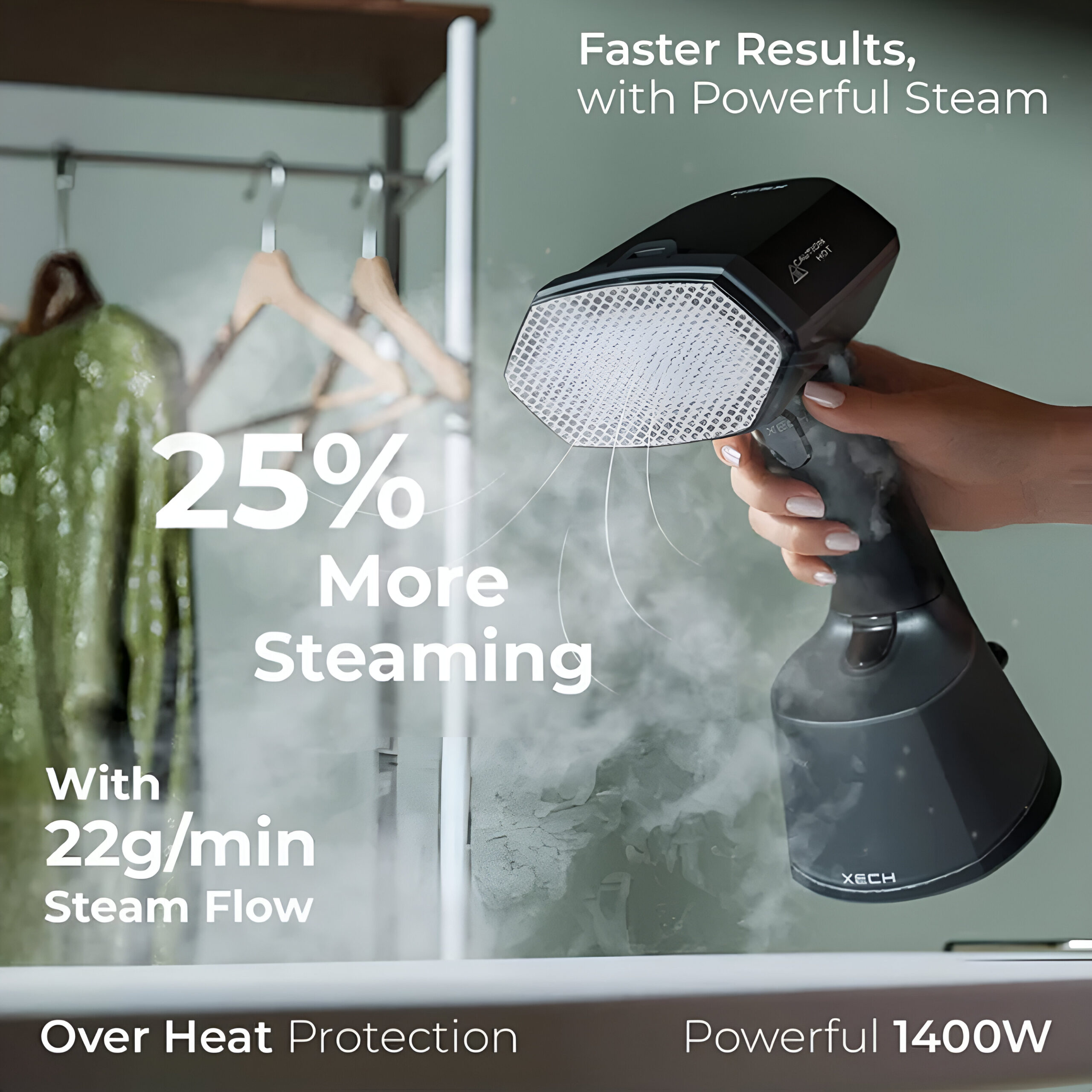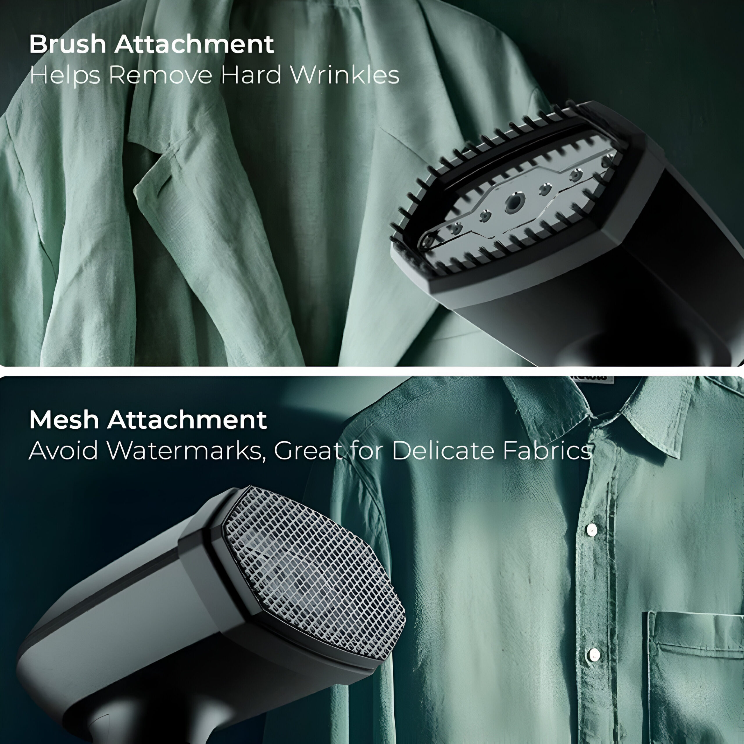 Steam Gun XL – Fabric steamer with a large tank capacity of 270ml and a powerful 1400W heating element that effortlessly allows you to steam and iron fabrics both horizontally and vertically. Equipped with a stainless steel soleplate it allows even heat distribution and powerful steam throw. It comes with 2 separate attachments, the brush and the mesh attachment to make steaming and ironing more effective.