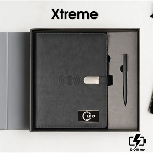 The Xtreme Power Bank With Diary | Metal Pen is a premium, multifunctional corporate gift designed for professionals, executives, and modern businesses. Combining advanced charging technology with elegant stationery, this product delivers unmatched utility and brand visibility. Featuring a high-capacity 10000mAH power bank, wireless charging support, a metal pen, study lamp, and LED logo branding, it is the perfect choice for promotional gifting, employee appreciation, and premium giveaways.